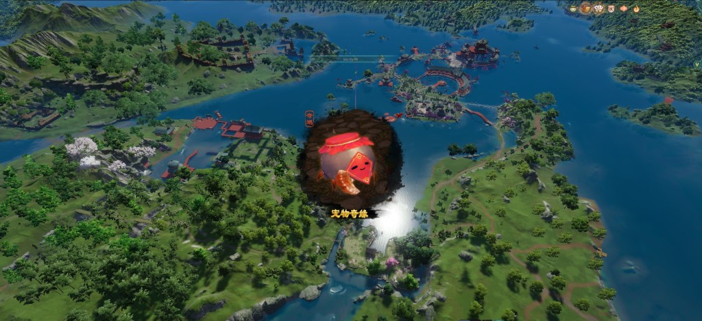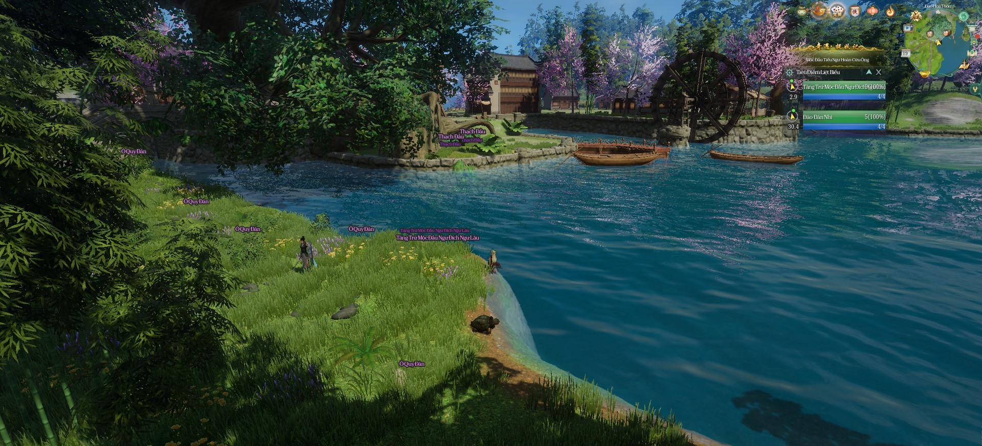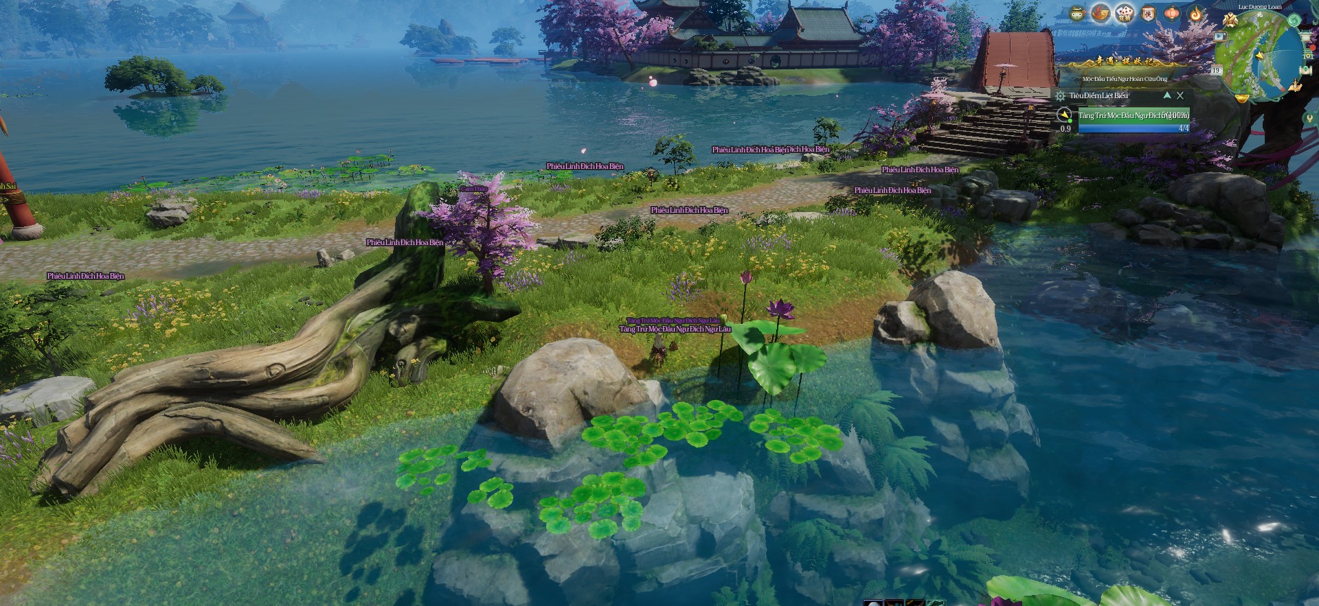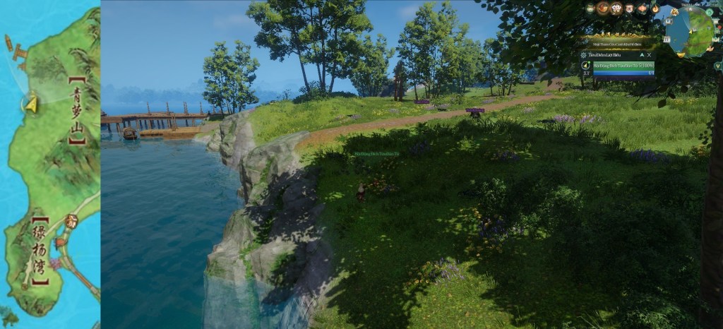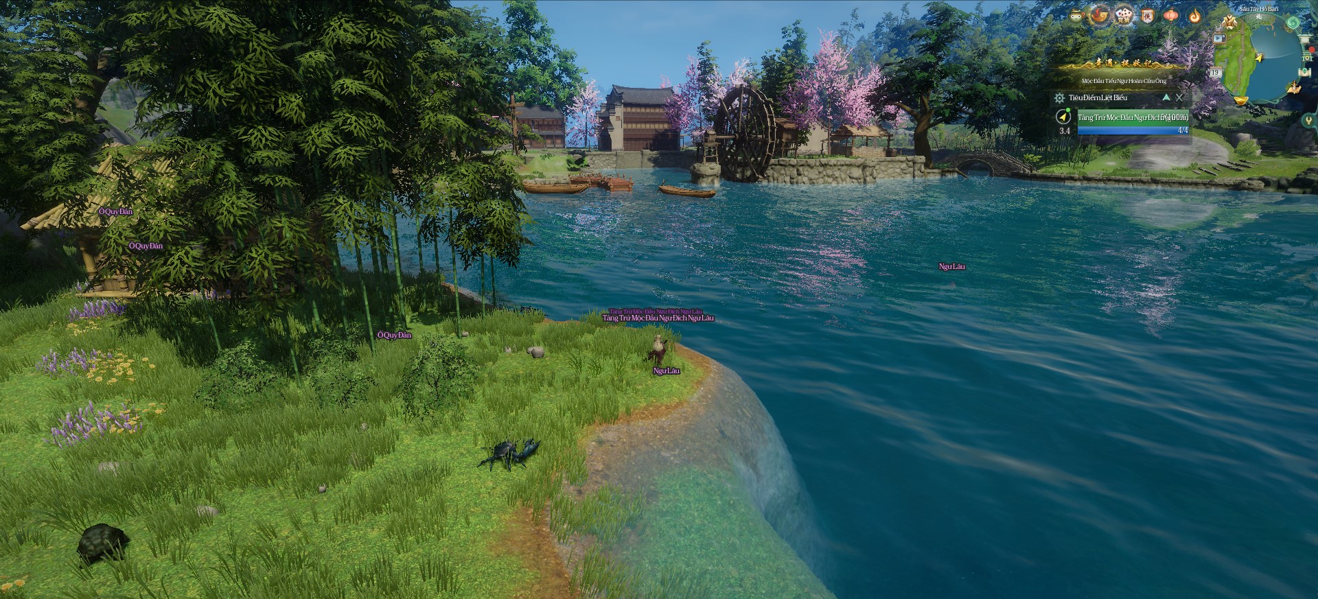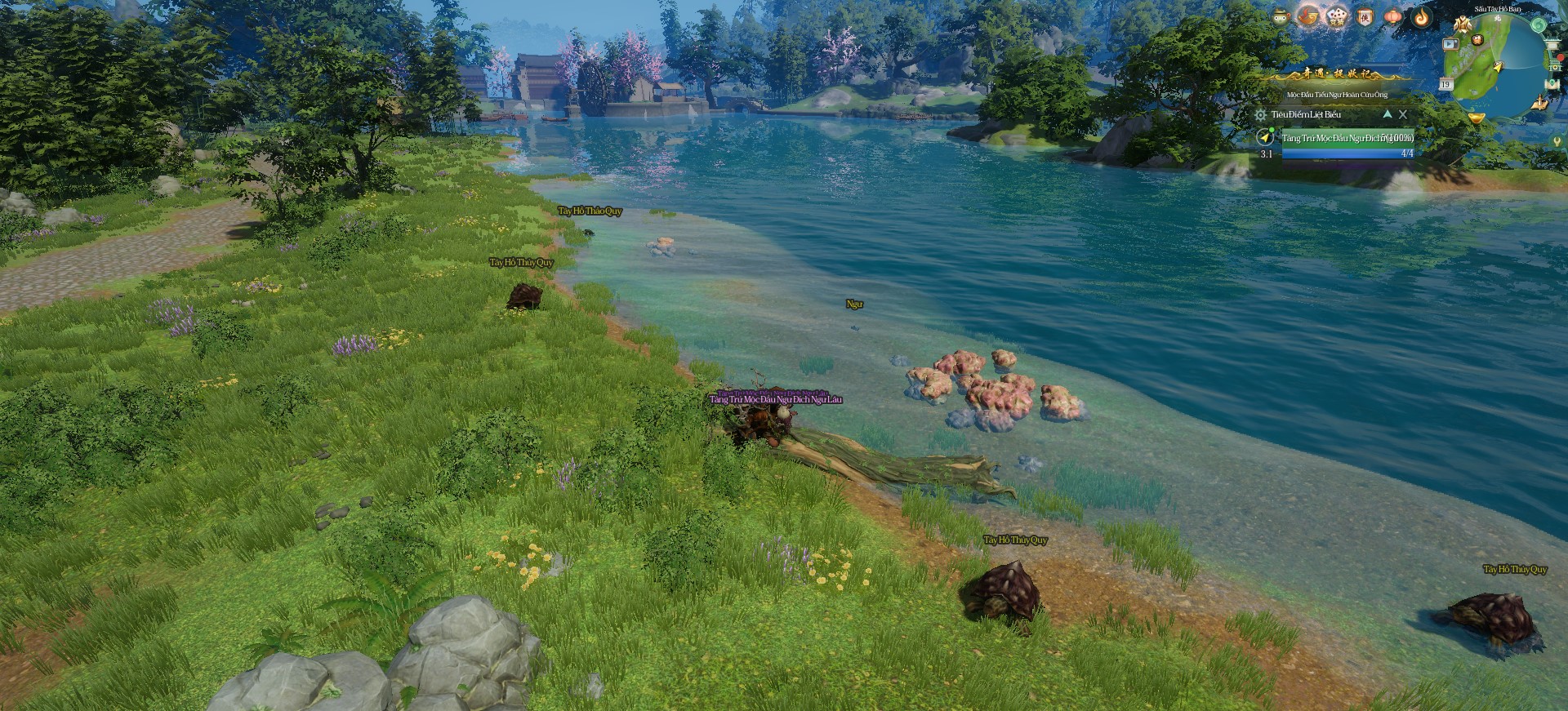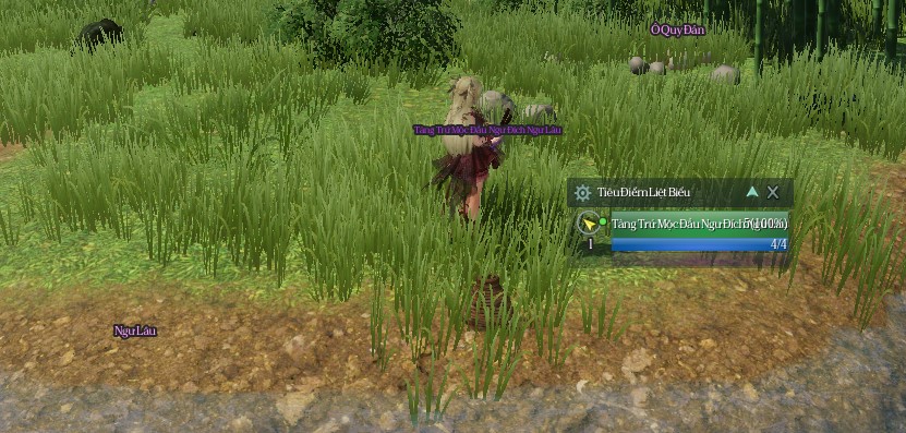 Đi tìm và tương tác với Tàng Trứ Mộc Đầu Ngư Đích Tiểu Ngư Lâu [藏着木头鱼的小鱼篓] (vị trí ngẫu nhiên như hình dưới) nhặt được Vị Khắc Hoàn Đích Mộc Đầu Ngư [未刻完的木头鱼] mang về giao cho Đào Cửu Ông.