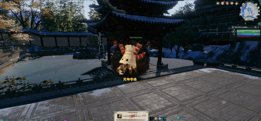 | Pet Đồng Tâm Khách [童心客] ㅡ | Kỳ ngộ thưởng: pet Đồng Tâm Khách [童心客]. Địa điểm: Tàng Kiếm Sơn Trang [藏剑山庄]. Phương pháp: nói chuyện với Chú Kiếm Đại Sư [铸剑大师] nhận Thanh Đồng Đinh [青铜锭]. Bay lên đỉnh lò kế bên rồi ấn phím tương tác. Mỗi ngày 3 lần. ![]() |