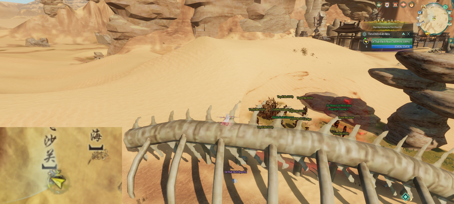 | Pet Đao Đậu [刀豆] ㅡ | Kỳ ngộ thưởng: pet Đao Đậu[刀豆] Địa điểm: Long Môn Hoang Mạc[龙门荒漠] Phương pháp: nói chuyện với Thung Thung [桩桩] nhận Sạn Tử [铲子]. Đi ra vị trí khoanh đỏ để sử dụng, mỗi ngày đào 3 lần. |