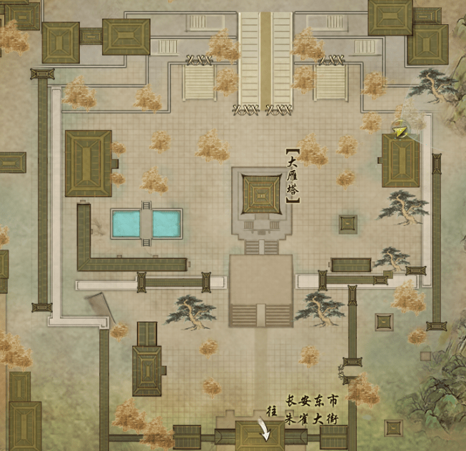 Đến vị trí, chọn tiến vào Đại Từ Ân Tự [大慈恩寺] để tìm Hoàng Hoàng.