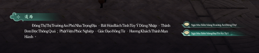 Đối thoại cho đến khi NPC đi mất, sang Trường An Thành tìm và đối thoại với Như Nhi (NPC đứng ngay xa phu thế giới).
