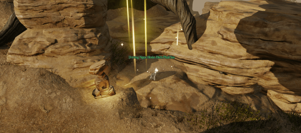 Tiến vào PB Nhất Tuyến Thiên [一线天], chạy đến vị trí như hình nhặt Dương Ngọc Hoàn Đích Phát Thoa [杨玉环的发钗] (không cần đánh boss, có thể leo núi để né quái, được kích vô song).
