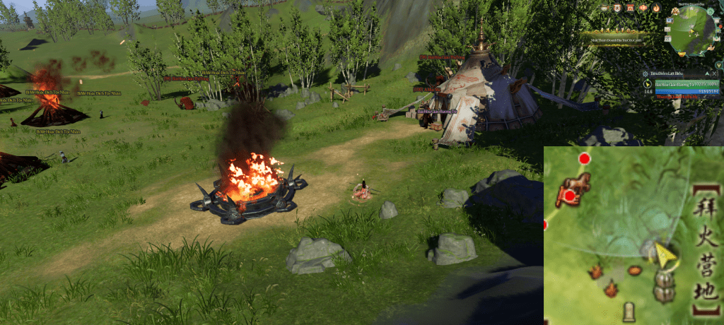 Đến lều gần chỗ Tô Thái lúc đầu nói chuyện với Trưởng Lão [长老] (kịch tình 1m50s).