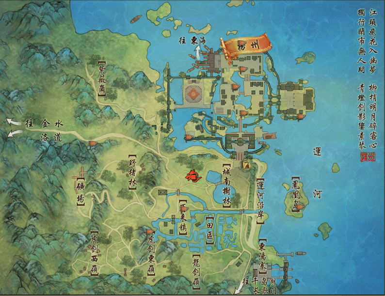 - Bạch Y Thiếu Niên nhờ bạn đi nhặt Hắc Nê Thảo [黑泥草] (vật phẩm ở dưới nước ngay đầu cổng thành). Nhận được Bạch Y Thiếu Niên Đích Tạ Lễ [白衣少年的謝禮] (4/5).