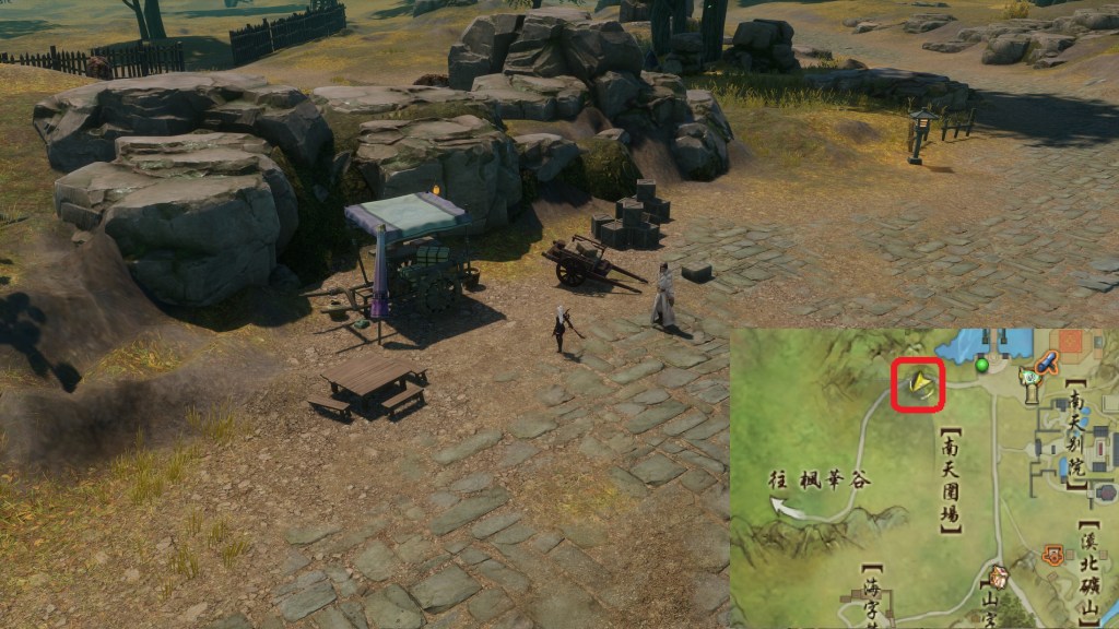 Nói chuyện NPC xong sẽ vào trạng thái kịch tình hãy chờ cho đến khi bảng kỳ ngộ thông báo mới và tiếp tục nói chuyện với NPC cho đến khi tìm NPC Đinh Lão Bá [丁伯] (Đinh Bá vị trí 1), NPC là NPC ẩn nên đựng lại khu vực hoặc đi xung quanh để NPC hiện ra