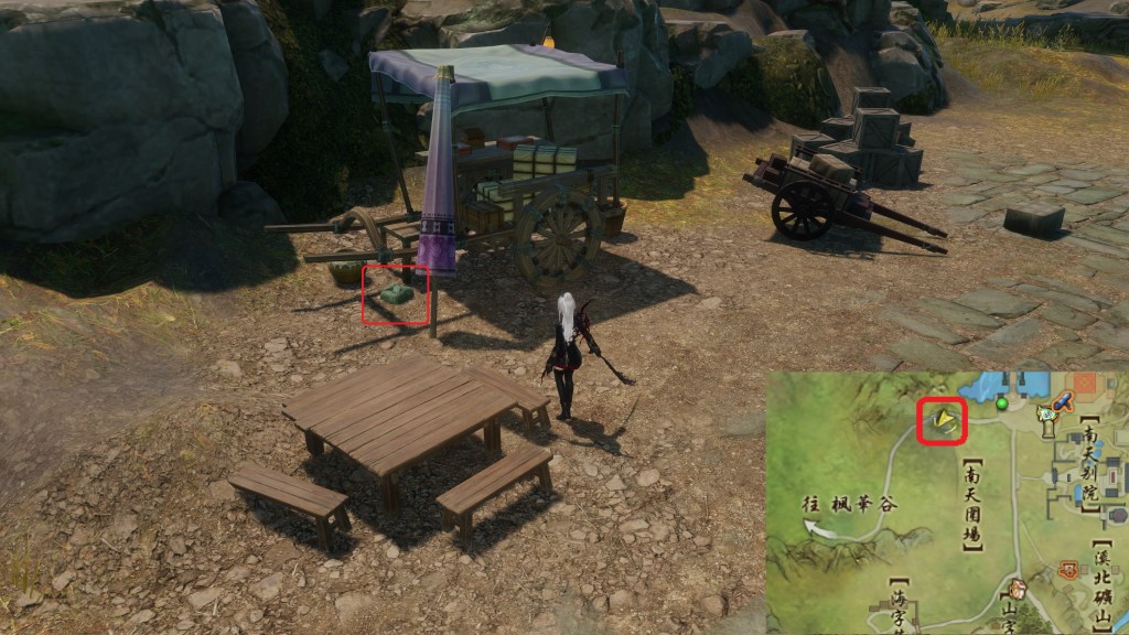 Trở về Tụng Thiếu Phong [頌少風] thông báo thông tin, NPC nhờ bạn tìm Định Ba Đích Hành Lý Rương gần Đinh Lão Bá [丁伯] (Đinh Bá vị trí 2)