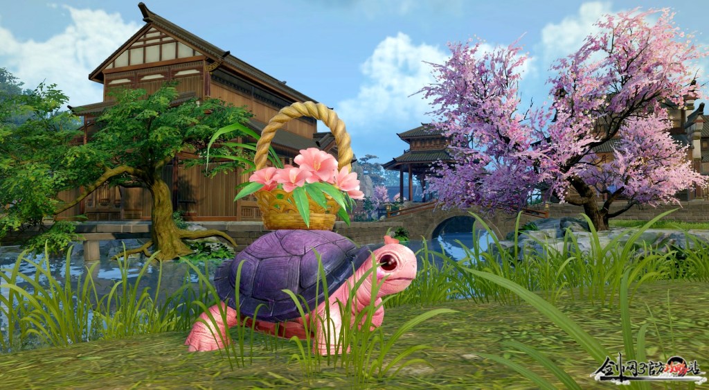Sủng Vật Hoa Nguyệt Tiểu Quy [花月小龜] | Kỳ ngộ thưởng: pet Hoa Nguyệt Tiểu Quy Địa điểm: Kim Thủy Trấn Phương pháp: đến vị trí như hình tương tác với Trương Lão Đầu Đích Trúc Khuông [张老头的竹筐]. Mỗi ngày 3 lần. |