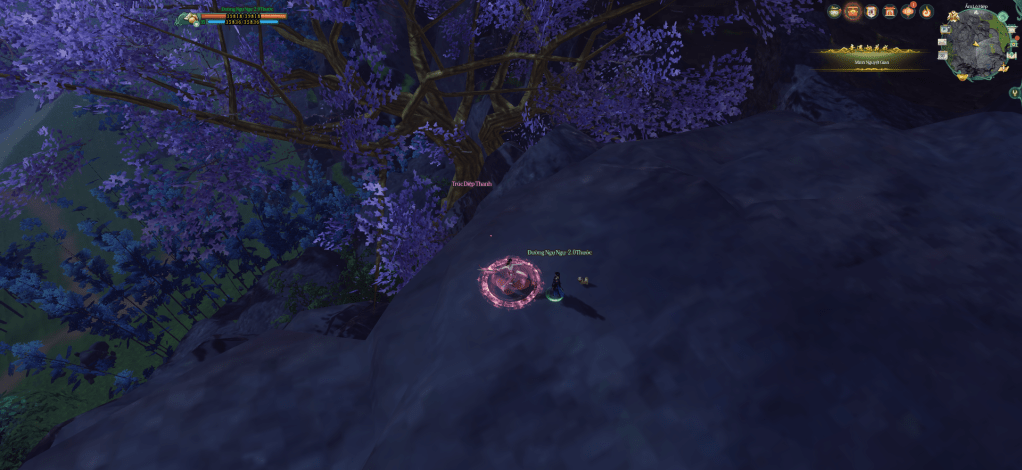 Sau khi đối thoại với Đường Ngự Ngự, bay đến vị trí như hình tương tác với Trường Xuất Tân Thảo Đích Thổ Đôi [长出新草的土堆].