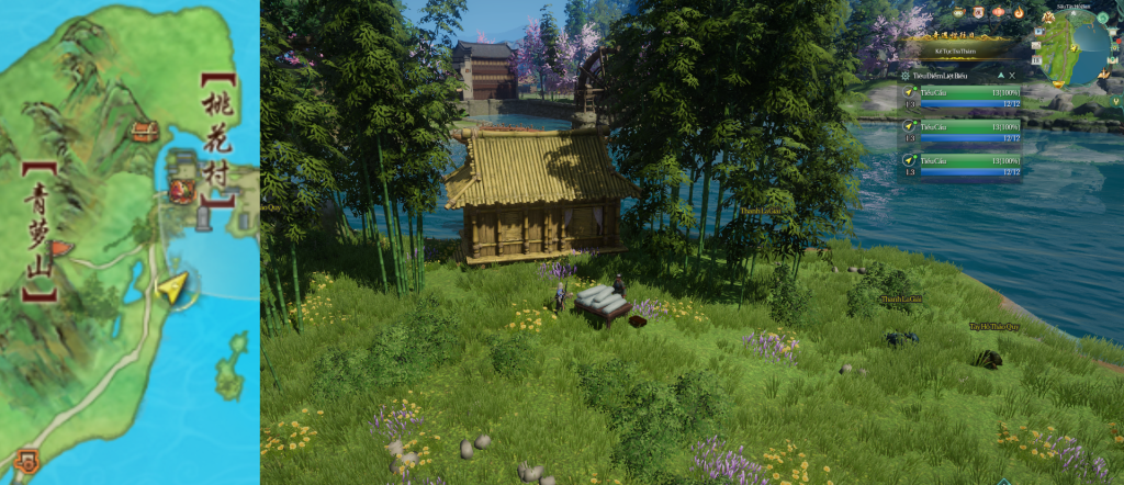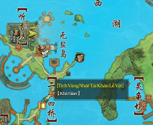 Bật M lên, đến vị trí của quyển trục màu vàng chỉ dẫn tìm Tôn Bà Bà [孙婆婆] (trên cầu).