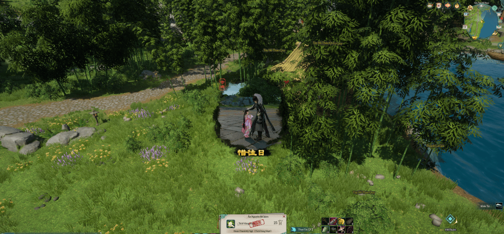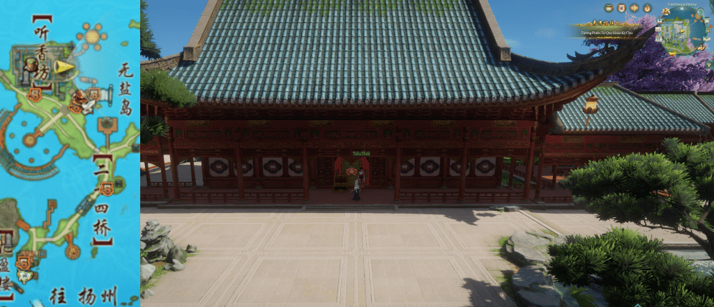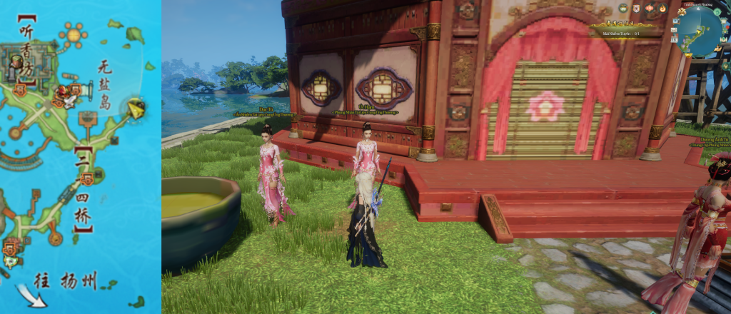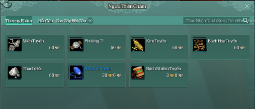 Đến vị trí như hình tìm Ức Hạm [忆菡] mua 1 cuộn Bách Nhiễm Tuyến [百染线] (nếu danh vọng Thất Tú của bạn không đạt hữu hảo thì bạn phải về thành chính, khu kỹ nghệ – may vá để mua).