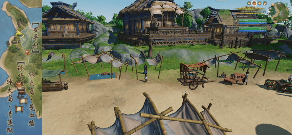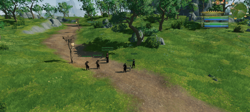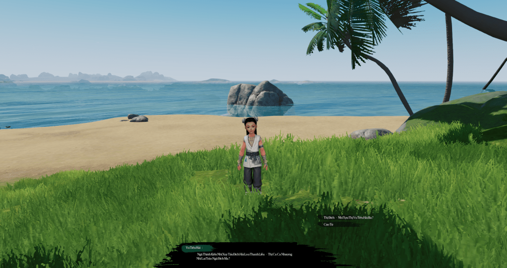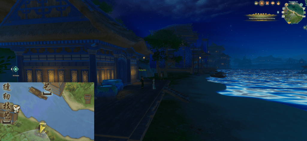 Chờ NPC nói chuyện xong, chạy ra cùng Vu Đại Hải đối thoại.