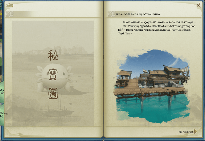 Vu Tiểu Hải xuất hiện gần đó, đối thoại với NPC nhận được Vu Tiểu hải Đích Họa Chí [于小海的画纸], sử dụng vật phẩm và bay đến vị trí mũi tên xanh trên bản đồ nhặt Trầm Điện Điện Đích Mộc Dũng [沉甸甸的木桶].
