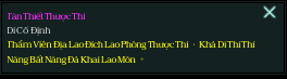 - Vào Đại Đường Giám Ngục[大唐监狱] tìm Ngô Lâm[吴霖]. Bình thường không thể vào đó được, cần khí trên 150 để bị bắt vào tù ( dùng 1 acc khác cũng có Bộ Khoái để bắt bạn vào tù). Có thể đi cừu sát hoặc mua Chích Huyết Cổ cắn vào.