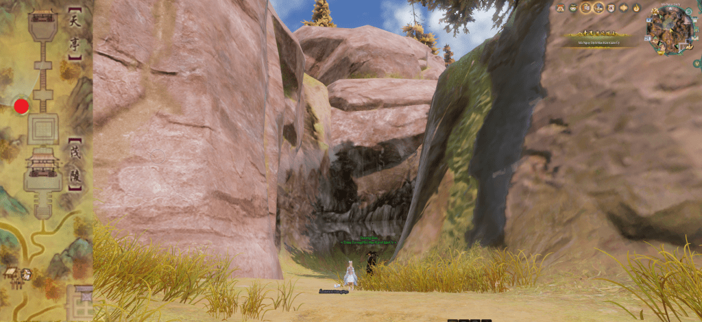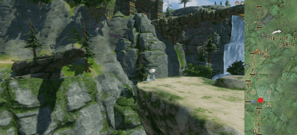 - Sau đó đi đến vị trí như hình để tìm tung tích bạn Lăng Tuyết Các ở Thành Đô. Đến vị trí như hình tìm Tú Nương [秀娘]. Nếu bạn làm xong AN Tâm Kết Chi Thích [心结之释] thì trực tiếp nói chuyện với Tú Nương, còn chưa làm thì nói chuyện với Nham Thư Sinh [岩书生] (ở vực phía bên kia) để NPC chạy kịch tình, sau đó bắt đầu làm nhiệm vụ cho đến khi nổ AN rồi nói chuyện với Tú Nương.