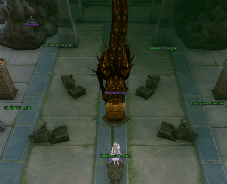 - Ở tầng này giải theo ngũ hành tương khắc. Chọn vào đầu rồng rồi sử dụng vật phẩm tương ứng.