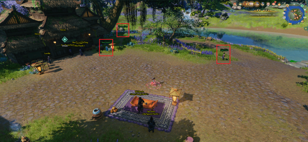 - Quay lại nói chuyện với Bùi Nguyên. Đối thoại cho đến khi Bùi Nguyên nhờ đi tìm 4 NPC. Nói chuyện lần lượt với Nam Sanh [南笙], Ngũ Thu [伍秋], Diệp Hiểu [叶晓], Trương Tuệ [张慧] ở ngay gần đó.