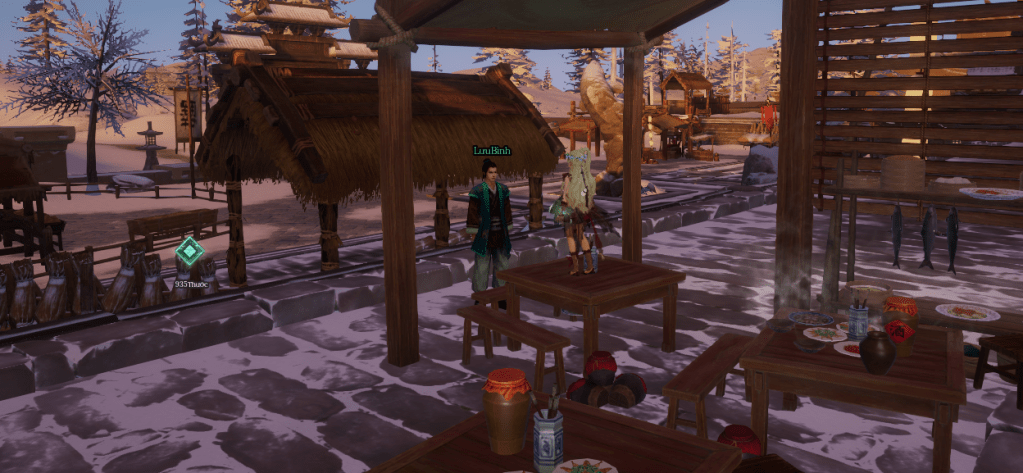 Quay về Thiên Đảo Hồ để sử dụng bản đồ. Bây đến vị trí mũi tên xanh tìm Lưu Bình.