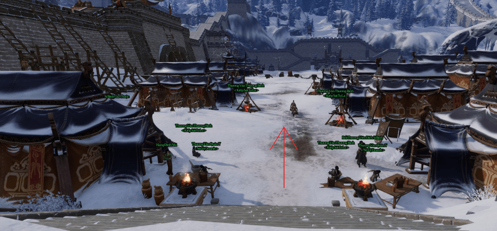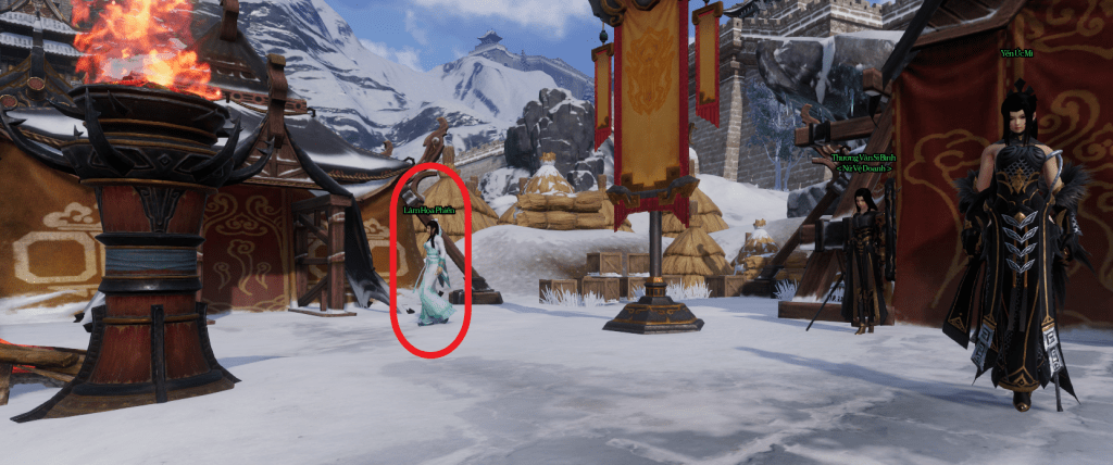 - Đi tìm A Lê [阿梨], đi xuống bậc thang trước mặt Yến Ức Mi, đi thẳng vào quân trại, đến gần NPC sẽ xuất hiện. Đưa cho A Lê 1 cây Đản Xoa Thúc Thúc Đích Đường Hồ Lô [蛋叉叔叔的糖葫芦] (bắt buộc phải là loại này, có thể tự chế – giao dịch – mua trên sàn giao dịch). Nhận được vật phẩm Tạc Tử [凿子].