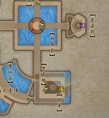 - Đi vào Băng Lao trong Thương Vân Bảo [苍云堡] tìm Hề Nhân Chiến Phu [奚人战俘]. Lối vào sau lưng Trưởng Tôn Vong Tình [长孙忘情]. Đối thoại cho đến khi NPC đồng ý nhảy rồi quay sang đối thoại với Hoa Chiết Xuân.