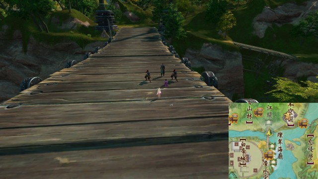 Sau Khi vận công xong thì có 1 nhóm tiểu quái đánh 2 NPC, đánh chết tiểu quái và nói chuyện với Tôn Lão Bá [孫老伯] và Âu Nạm Hạnh [歐南杏], Sau đó đi tìm Lưu Vân Trại Chủ [流雲寨主]