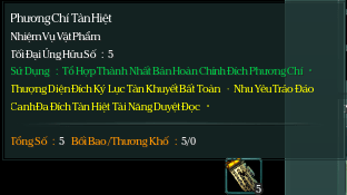 - Đi đánh Uy Khấu [倭寇], nhặt 5 mảnh Phương Chí Tàn Hiệt [方志残页] ghép thành Hoàn Chỉnh Đích Phương Chí [完整的方志]. Mang về giao cho Vệ Tái Du.