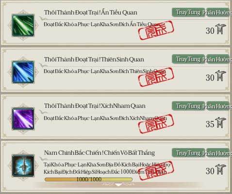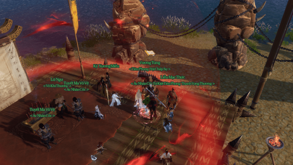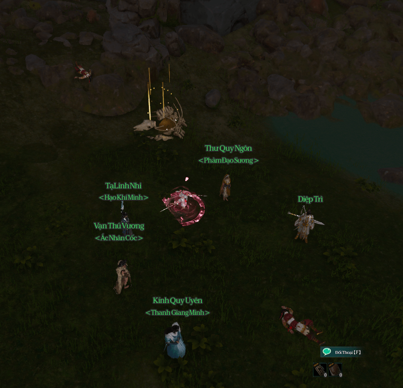 - Sau khi nổ kỳ ngộ, quay lại khoá phục Lạn Kha Sơn (bất kỳ) tìm Tiên Phong Đội Chấp Sự của phe mình để nói chuyện. ANC là Vương Tùng [], HKM là []