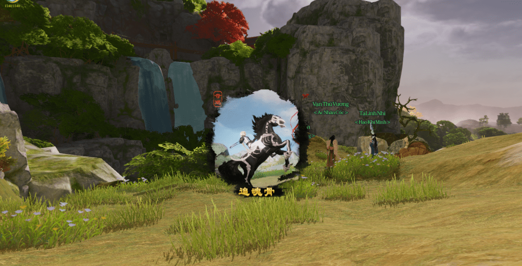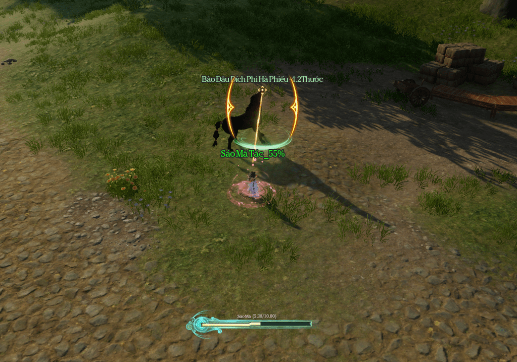 - Nói chuyện với Diệp Trì xong thì sau lưng xuất hiện Bào Đâu Đích Phi Hà Phiếu [跑丢的飞霞骠], chạy lại dùng skill bắt ngựa Sáo Mã [套马] bắt nó.