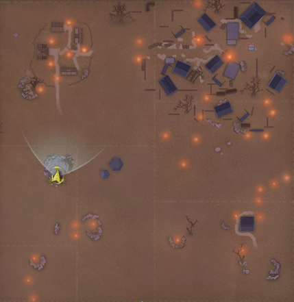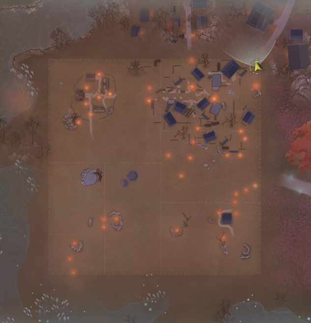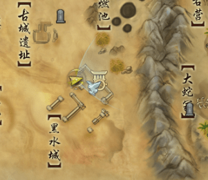 - Đi lấy nước ở 4 chỗ đã đánh dấu (cỏ xanh) về giao cho Khẩu Hạt Đích Hồn Linh [口渴的魂灵] (mũi tên vàng). Tiếp tục nói chuyện cho đến khi kỳ ngộ gợi ý sang Hắc Qua Bích [黑戈壁] lấy nước.
