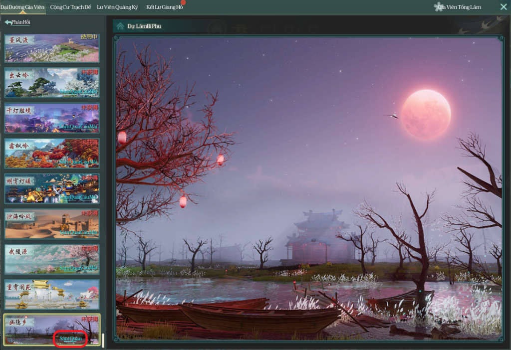 - Bấm Shift M > Dự Lãm Bì Phu [预览皮肤] > Chọn Map cần vào > Sâm quan [参观].