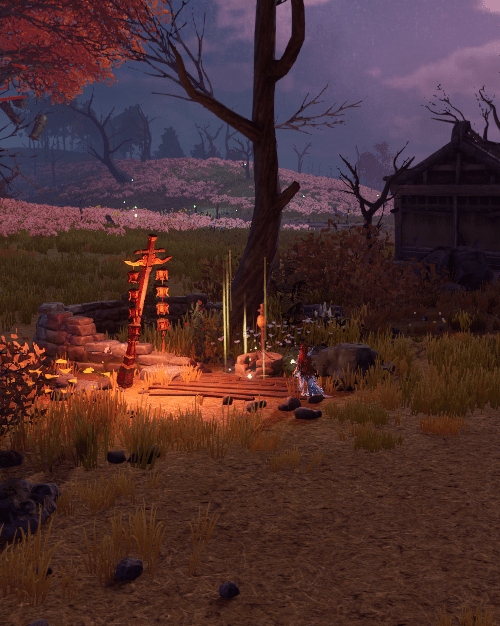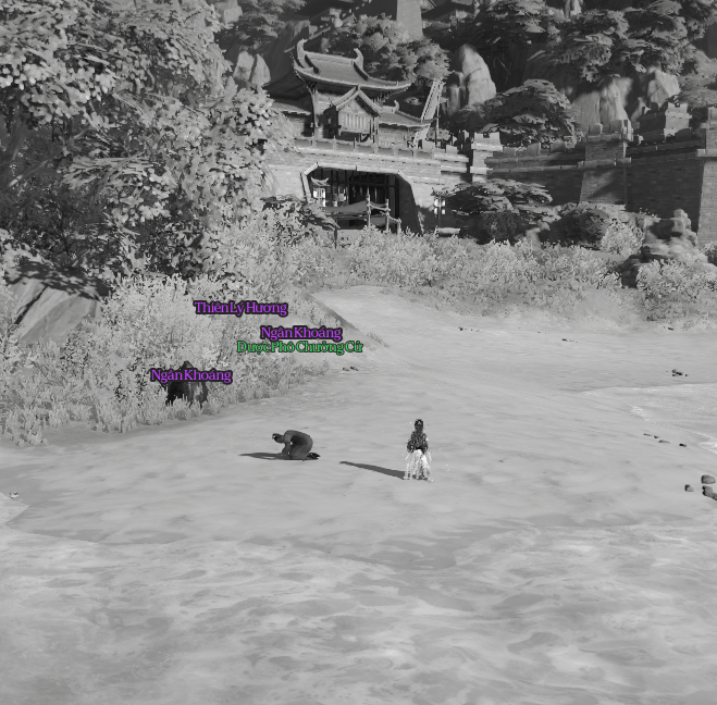 - Bạn có thể đến vị trí như hình để nhặt Dị Sắc Minh Giới Hoa [异色冥界花] để mất màng hình đen xám (UID 10502).