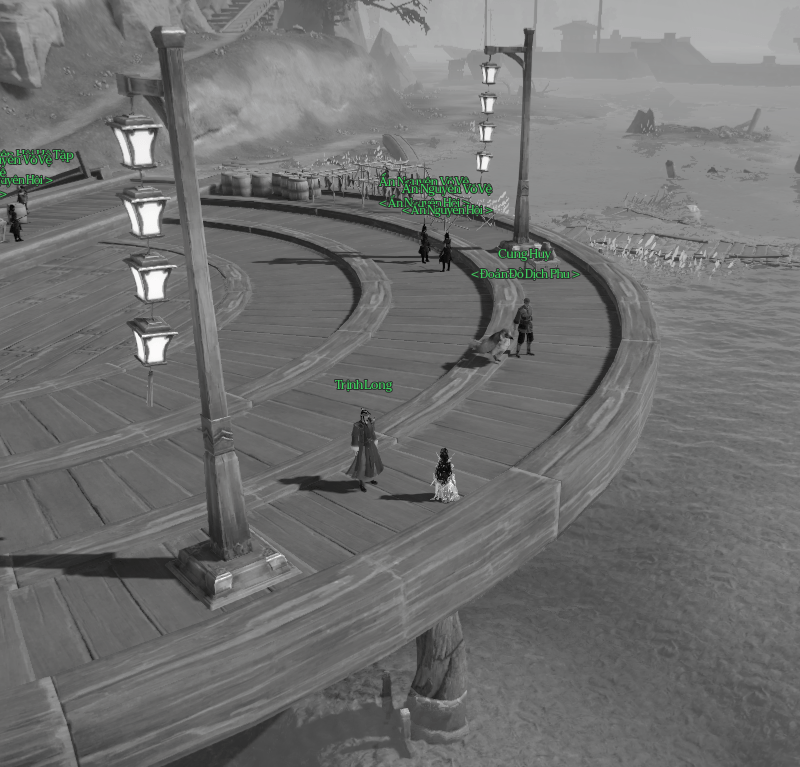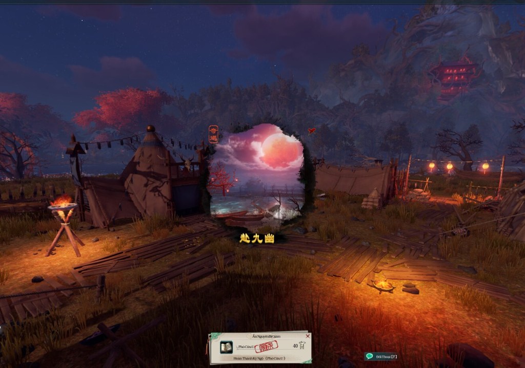 - Sang Sở Châu [楚州] tìm và tương tác với Phá Toái Đích Bài Biển [破损的牌匾]. Sau đó đi nói chuyện với Vương Lão Bá [王老伯] đang đứng dưới tán cây cạnh căn nhà đổ nát phái sau.