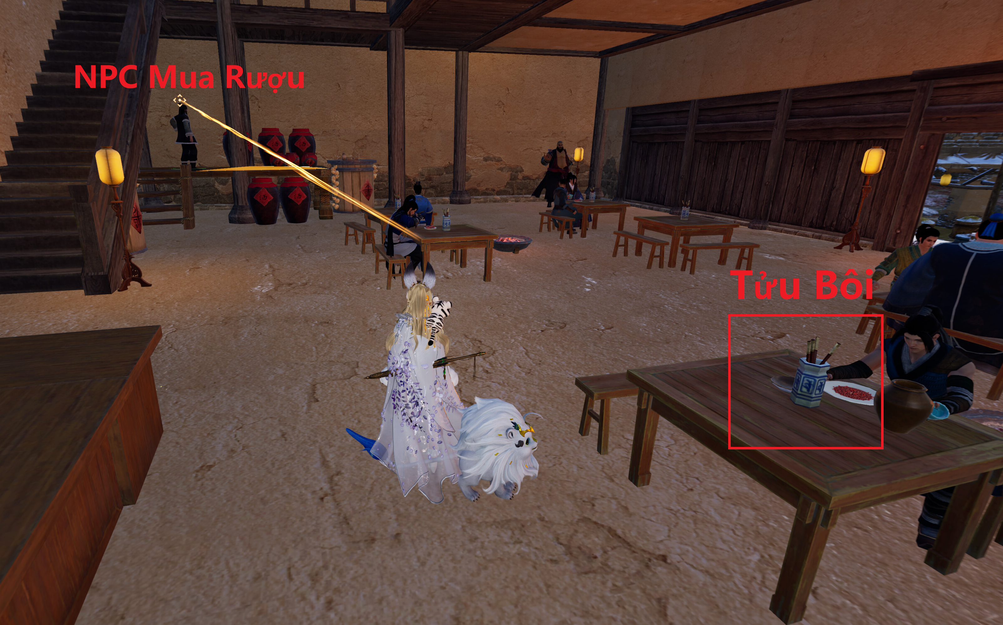 | Pet Đản Hoàng | Kỳ Ngộ Thưởng : Đản Hoàng Địa Điểm : Ngân Sương Khẩu 銀霜口 Phương Pháp : Mỗi Ngày tốn 30 cái Vấn Tồng Tử Lệnh [雲從四合令] để mua 3 bình rượu, dùng để tương tác với Tửu Bôi [酒杯] |