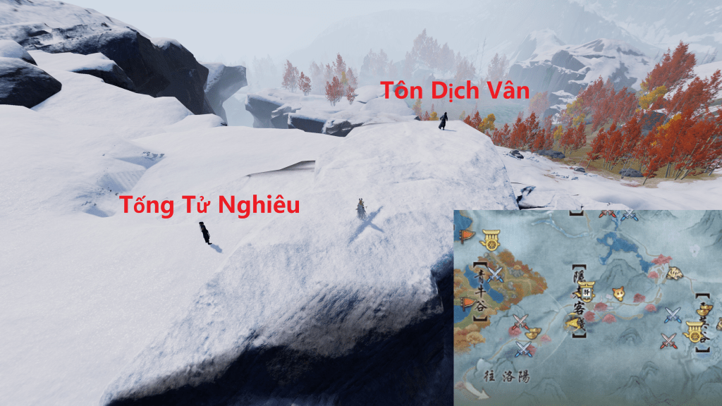 Sau Khi nói chuyện ở trong hang động xong bạn hãy trở lại cổng của quán trọ sẽ xuất 3 NPC Vương Tất Ngôn [王必言], Tống Tử Nghiêu [宋子堯] và Văn Thiên Thuấn [聞千瞬] bạn hãy nói chuyện với Văn Thiên Thuấn [聞千瞬] và hoàn thành kỳ ngộ
