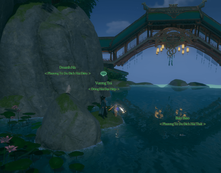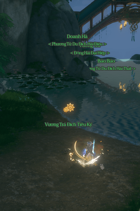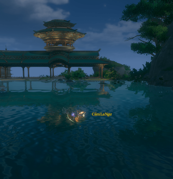 - Nói chuyện cho đến khi NPC bảo bạn đi tìm Cẩm La Ngư [锦罗鱼]. Cá tại vị trí như hình. Đánh chết cá nhặt được vật phẩm Cẩm La Ngư [锦罗鱼] mang về giao cho Vương Trá.