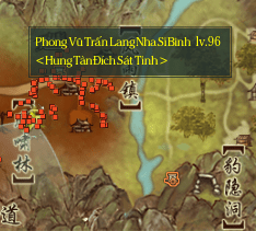 • Đánh 3000 quái nằm trong khu vực như hình (uy khấu, lưu manh, thám tử, tinh duệ, thủ vệ, ….). Vẫn là tự mình đánh. Đánh xong tìm Khấu Bạc nói chuyện cho đến khi nhận được Cửu Sắc San Hô [九色珊瑚].
