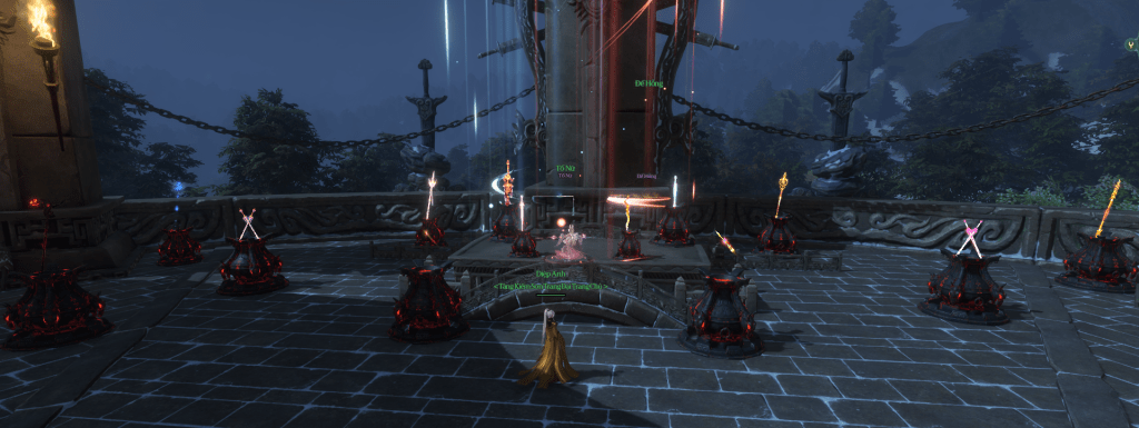 • Tiến vào phó bản Thần Kiếm Trủng [神剑冢] (Map Tàng Kiếm Sơn Trang) rút kiếm. Đứng ở trong vòng sáng rồi bấm phím tương tác để rút kiếm, nếu hên thì nhận được kiếm rồi mang kiếm đi tìm Diệp Vĩ. Nếu không rút được kiếm thì đợi sau 0h (giờ game) quay lại rút tiếp.