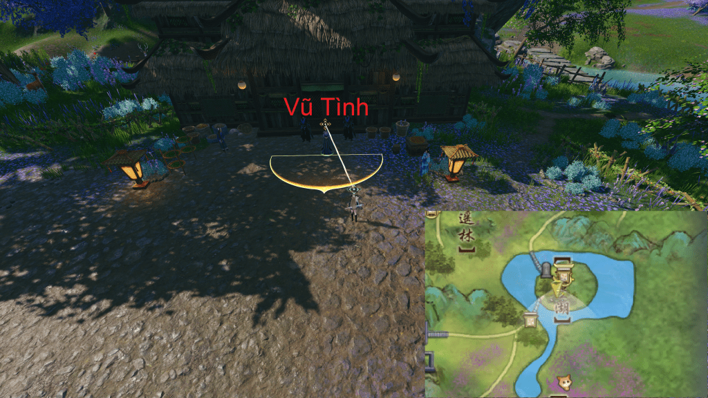 bạn sẽ nhận được vật phẩm Lan Hoa [蘭花], bạn hãy ra cổng nhà gần NPC sẽ có vùng sáng sử dụng phím tương tác (F)