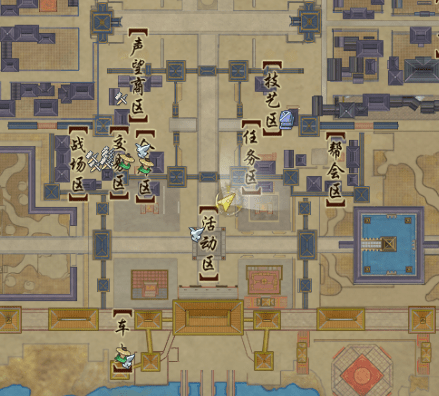• Đến vị trí như hình, nói chuyện với Nguyên Tử Kính [元子敬]. Nói chuyện cho đến khi gợi ý chuyển sang đi tìm Tiết Vinh Nhung.