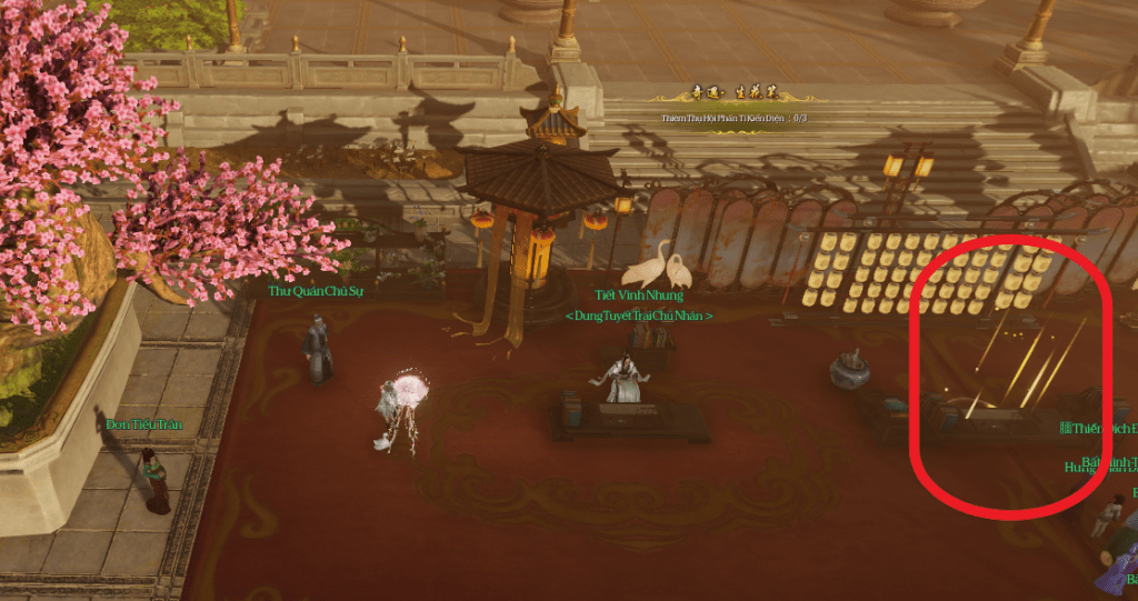 • Nói chuyện với Tiết Vinh Nhung [薛荣戎] vừa xuất hiện gần đó. Chờ kịch tình kết thúc thì nói chuyện với Thư Quán Chủ Sự.